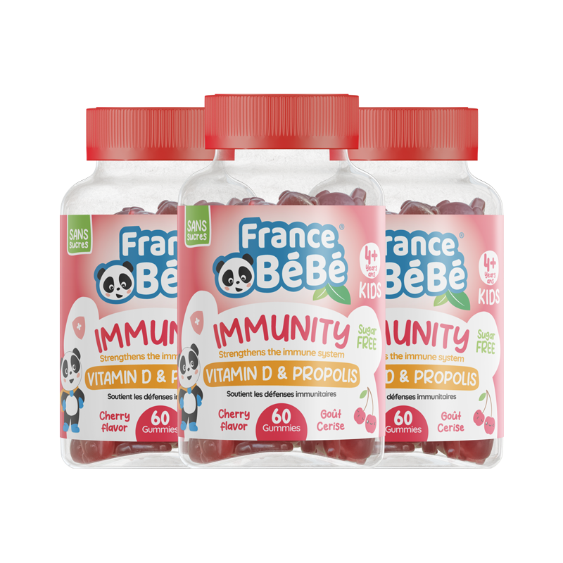 Được sản xuất tại Pháp, kẹo dẻo tăng cường miễn dịch với keo ong , giàu vitamin D và có hương vị anh đào thơm ngon, giúp kích thích hệ thống miễn dịch tự nhiên của cơ thể.